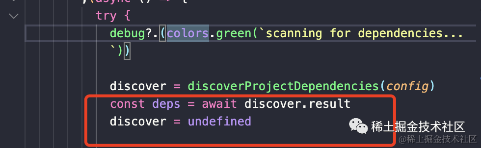 最终 createDepsOptimizer 方法中会用 deps 保存 discoverProjectDependencies 方法的项目中扫描到的所有第三方依赖。