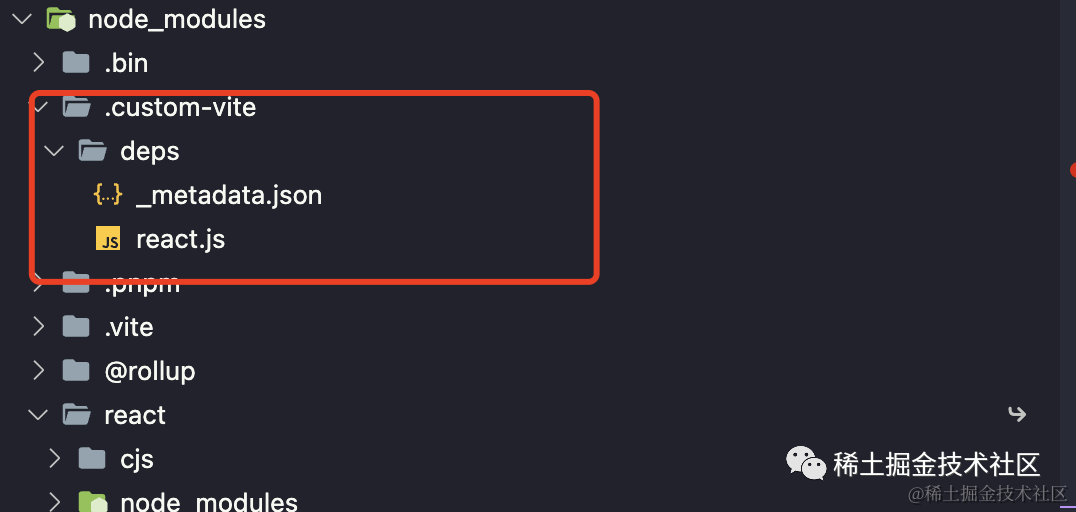 我们在使用 vite 启动项目时,细心的同学会发现项目 node_modules 目录下会额外增加一个 node_modules/.vite/deps 的目录: