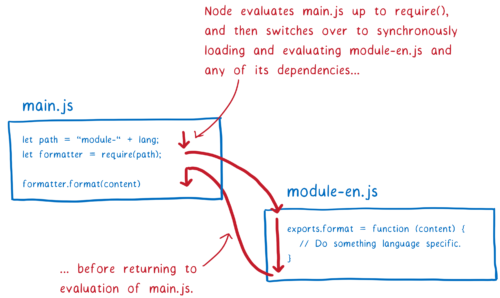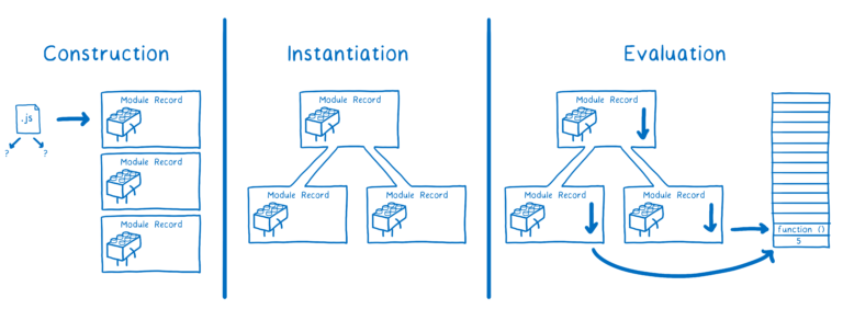 这种方法(算法分为多个阶段)是 ESM 和 CommonJS 模块 之间的主要区别之一。