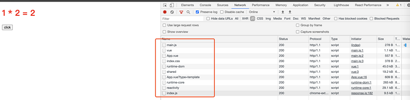 从上图可以看到,已经不再有一个构建好的 bundle、chunk 之类的文件,而是直接加载本地对应的文件。