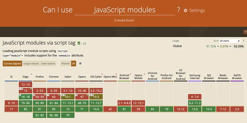 「 ESM 」 全称 ECMAScript modules,基本主流的浏览器版本都以已经支持。