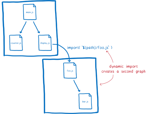 为了使 ES 模块成为可能,有一个建议叫做动态导入。有了它,您可以使用类似的导入语句: