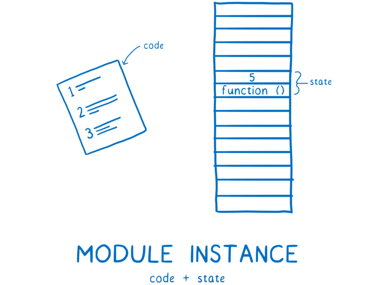 模块实例, 实际上是 「 代码 」(指令列表)与「 状态」(所有变量的值)的组合。