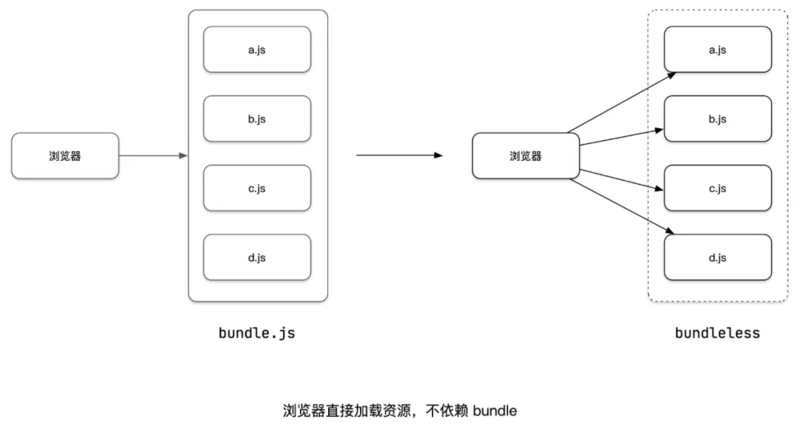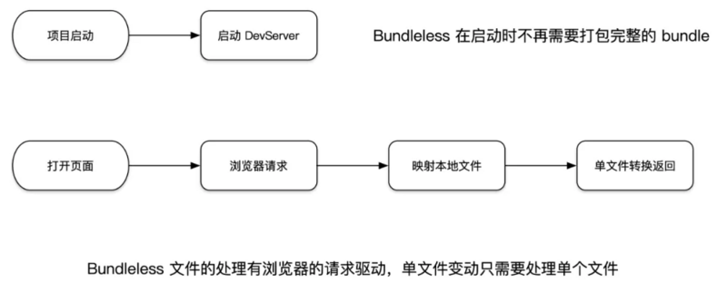 Bundleless, 本质上是将原先 Webpack 中模块依赖解析的工作交给浏览器去执行,使得在开发过程中代码的转换变少,极大地提升了开发过程中的构建速度,同时也可以更好地利用浏览器的相关开发工具。