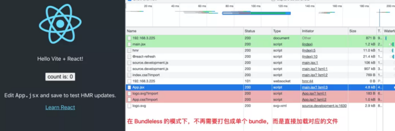 Bundleless 模式可以充分利用浏览器自主加载的特性,跳过打包的过程,使得我们能在项目启动时获取到极快的启动速度,在本地更新时只需要重新编译单个文件。