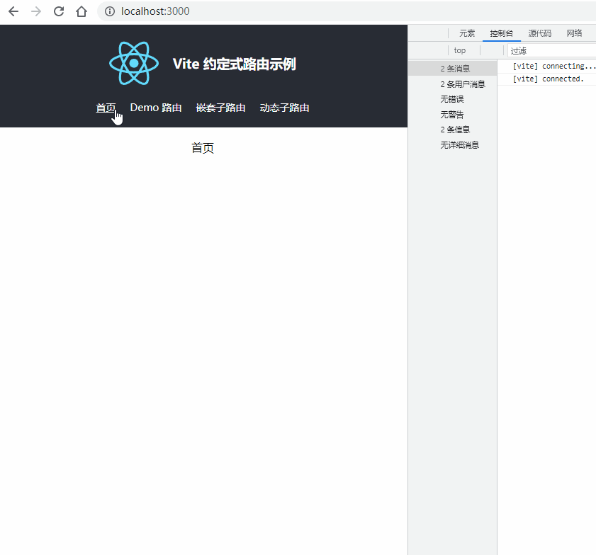 这种路由方式看起来非常清晰,创建一个路由就如同写组件一样简单。umijs 也支持约定式路由,形式基本一致,用过的想必也因此受益。然而 Vite 作为一个脚手架提供更加通用的功能以支持 vue 和 react,自然不会耦合这种路由方案。