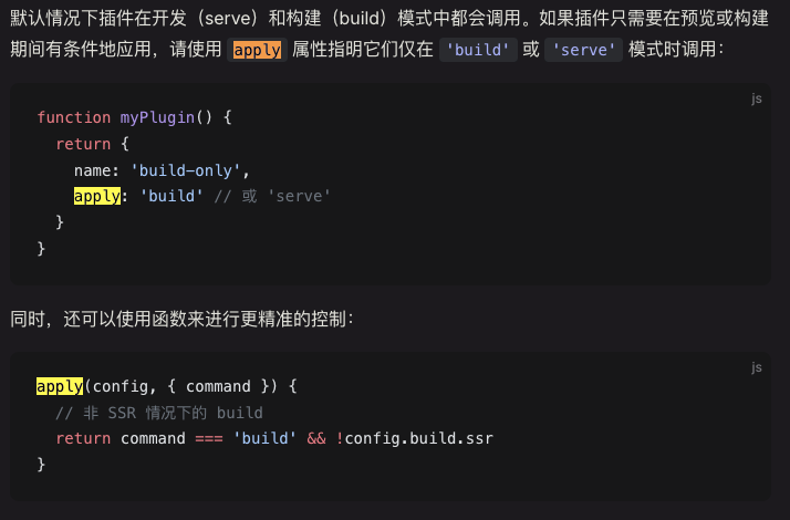 apply:'serve'处理开发环境