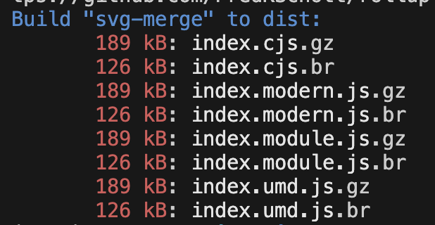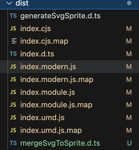 { "name": "svg-merge", "version": "1.0.0", "description": "一款用于将项目中所有的svg合并到一个svg文件中的工具", "type": "module", "source": "src/index.ts", "exports": { "require": "./dist/index.cjs", "default": "./dist/foo.modern.js" }, "main": "./dist/index.cjs", "module": "./dist/index.module.js", "unpkg": "./dist/index.umd.js", "scripts": { "build": "microbundle", "dev": "microbundle watch" }, "author": "front789", "license": "ISC", "devDependencies": { "@types/fs-extra": "^11.0.4", "@types/node": "^20.12.11", "microbundle": "^0.15.1", "svgo": "^3.3.2", "vite": "^5.2.11" }, "dependencies": { "chokidar": "^3.6.0", "fast-glob": "^3.3.2", "fs-extra": "^11.2.0", "glob": "^10.3.12", "node-html-parser": "^6.1.13" }}随后,我们执行npm run build即可。