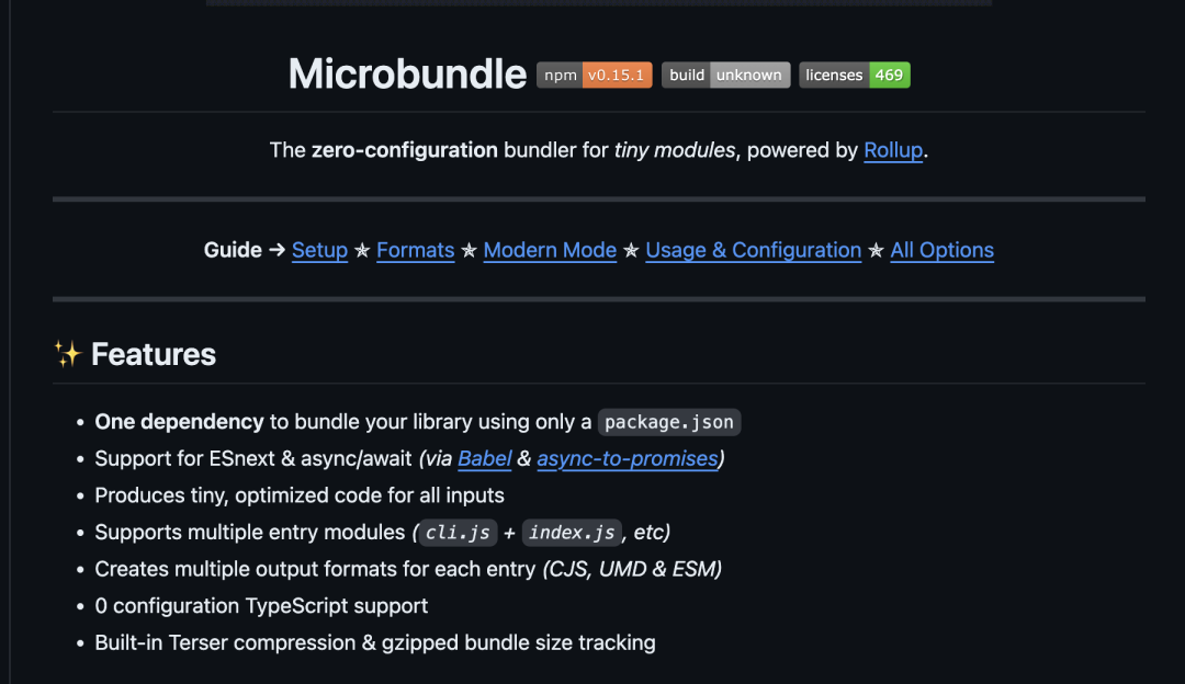 针对一个插件的处理或者库的打包,我们可以选择 microbundle[22]。
