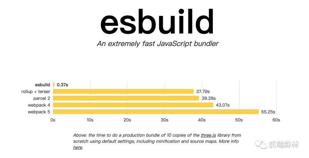 esbuild官方的介绍:它是一个JavaScript Bundler 打包和压缩工具,它可以将JavaScript和TypeScript代码打包分发在网页上运行。esbuild底层使用的golang进行编写的,在对比传统web构建工具的打包速度上,具有明显的优势。编译Typescript的速度远超官方的tsc。