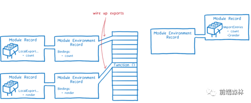 到这里,在加载过程结束时,从普通的主入口文件变成了一堆模块记录Module Record。下一步是实例化此模块并将所有实例链接在一起。