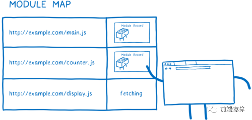 一旦模块记录被创建,它会被记录在模块映射Module Ma中。被记录后,如果再有对相同 URL 的请求,Loader 将直接采用 Module Map 中 URL 对应的Module Record。
