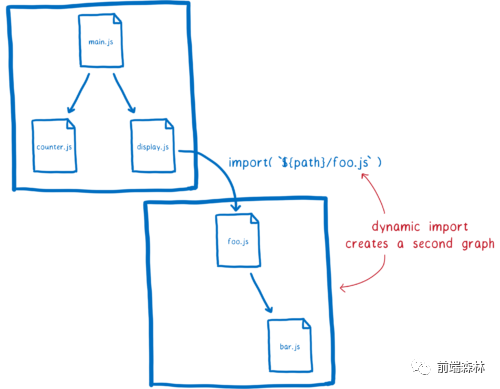 它的原理是,任何通过 import() 加载的的文件都会被作为一个独立的依赖图的入口。动态导入的模块开启一个新的依赖图,并单独处理。