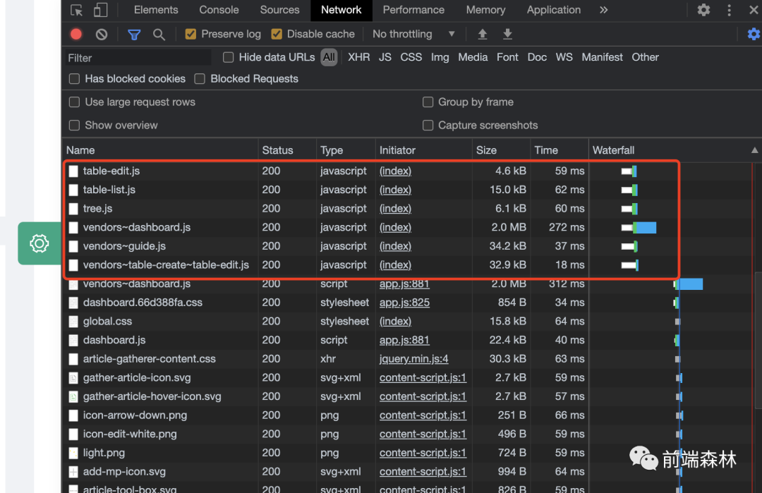 之前我们使用Webpack打包应用代码,使之成为一个bundle.js,有一个很重要的原因是:零散的模块文件会产生大量的HTTP请求。而大量的HTTP请求在浏览器端就会产生并发请求资源的问题:如上图所示,红色圈起来的部分的请求就是并发请求,但是后面的请求就因为域名连接数已超过限制,而被挂起等待了一段时间。