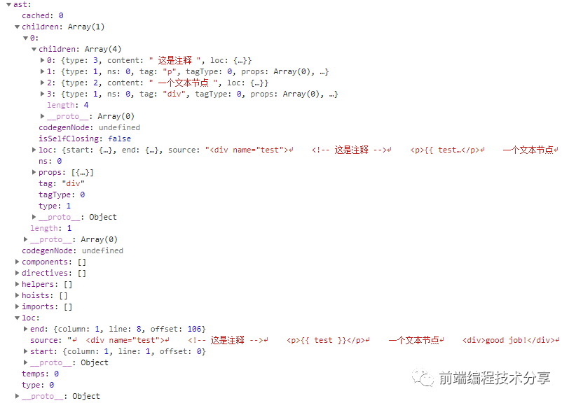 test,再对它执行trim(),去除空格。2. 然后会生成两个节点,一个节点是INTERPOLATION,type 为 5,表示它是双花插值。3. 第二个节点是它的内容,即test,它会生成一个SIMPLE_EXPRESSION节点,type 为 4。