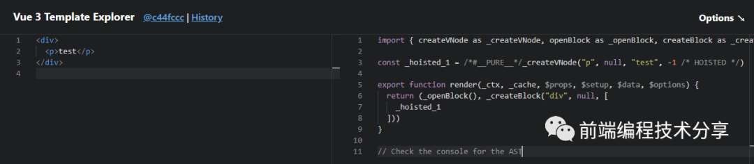 </div>这个示例只有一个动态节点,即 ,剩下的全是静态节点。从生成的代码中也可以看出,生成的节点和模板中的代码是一一对应的。静态节点的作用就是只生成一次,以后直接复用。