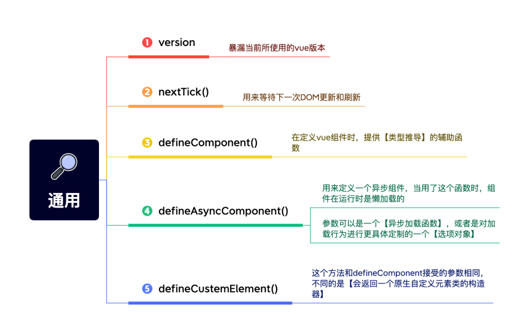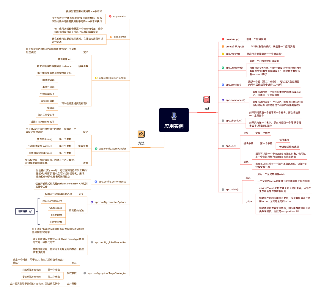 vue3 的全局 API 包含两个部分:应用实例和通用 API。那它们各自都有哪些内容呢?