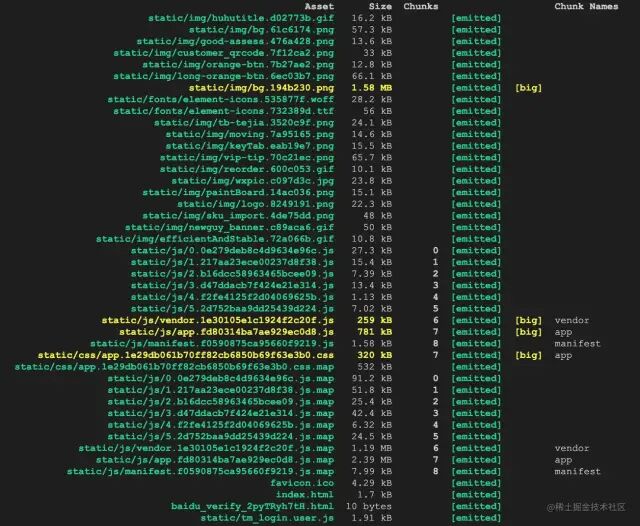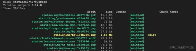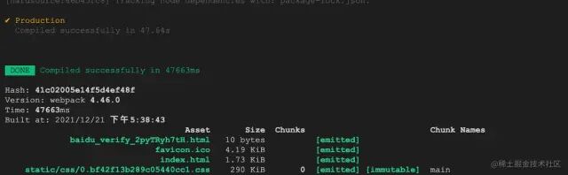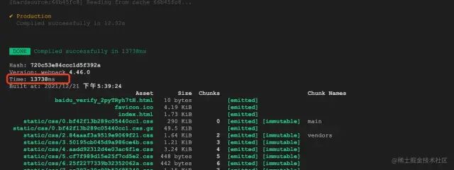 优化后,生产环境第二次打包时间:13738ms, 快了 70%