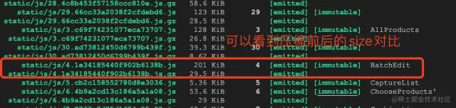 gzip on;gzip_min_length 1k;gzip_buffers 4 16k;gzip_http_version 1.1;gzip_comp_level 5;gzip_types text/plain application/javascript application/x-javascript text/css application/xml text/javascript application/x-httpd-php image/jpeg image/gif image/png;gzip_disable "MSIE [1-6]\.";gzip_vary on;复制代码npm run build打包后, OptimizeCssAssetsPlugin 的结果验证npm run build打包后, CompressionPlugin 的结果验证