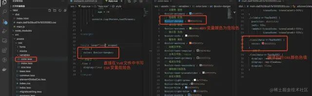 在. vue 文件中写 css、less 代码,配置 css 和 less,使项目正常运行。