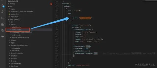 { test: /\.vue$/, use: [ { loader: 'cache-loader' }, { loader: 'vue-loader' } ] },复制代码npm run build打包后的结果验证:可以在 node_modules 下的. cache 看到缓存的文件