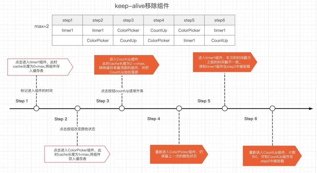 activated和deactivated两个生命周期若此时缓存数据长度大于 max ,则会从缓存列表中删除优先级优先被淘汰的组件,对应的可以看到该组件