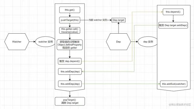 当然整个响应系统还包含依赖清理等其他操作,具体过程可以查看 Vue 2 阅读理解(十八)之响应式系统(一 ~ 四)Watcher