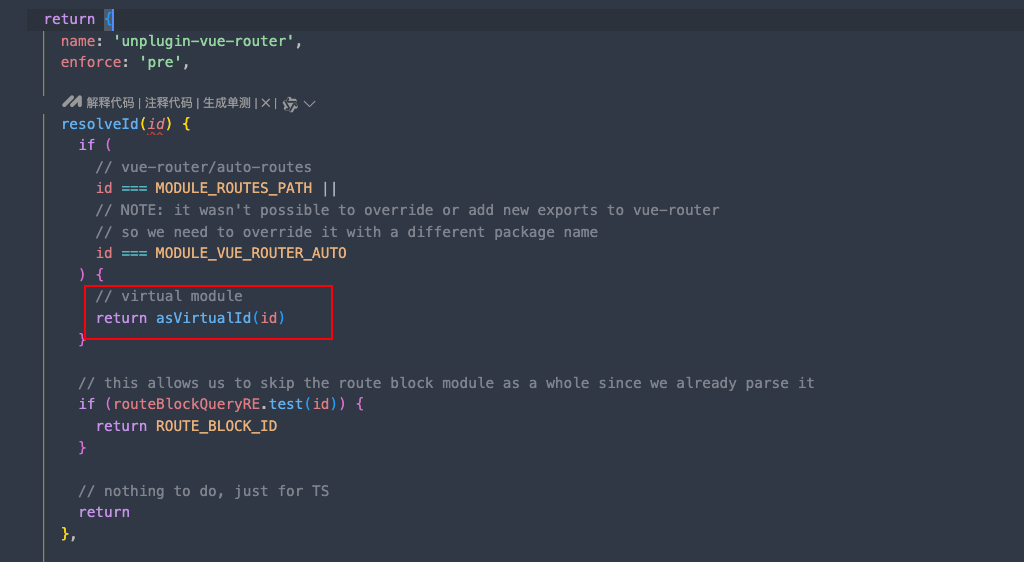 vue-router/auto的导入请求,将其转换为虚拟模块标识符。