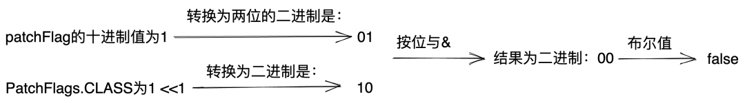如果也是动态 class 节点,在前一步的执行结果基础上再次执行 “按位或” 运算符:patchFlag |= PatchFlags.CLASS。执行后patchFlag的二进制值为11