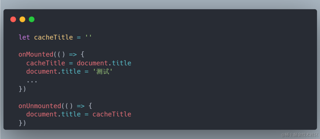 大家有没有遇到过这种业务,每个页面进入之后都有他自己对应的 title,你都得去改,如果没有的话那之前的 title 不用改,所以你就可能在每个页面写出 类似以下的代码:
