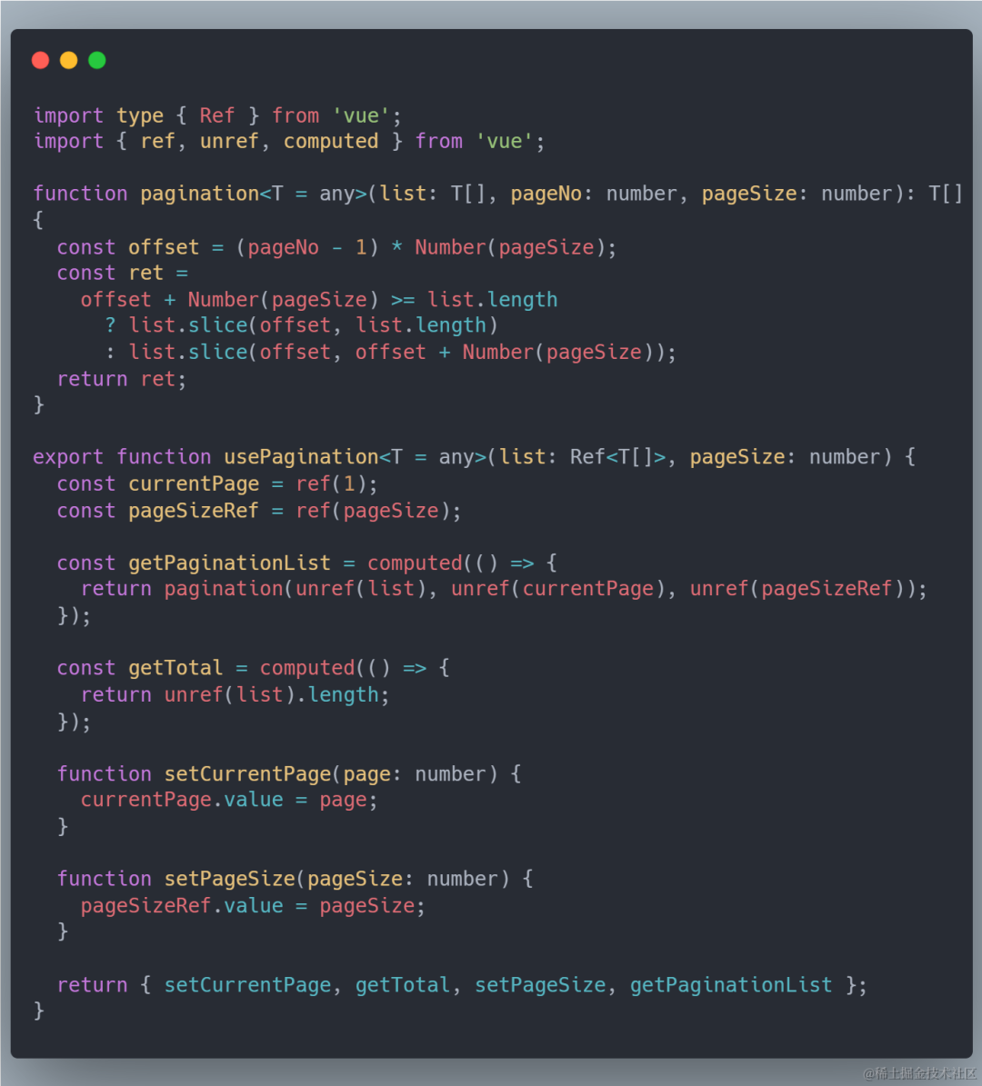 const setTitle = useTitle('测试')2) 大家写后台管理的时候是不是大多场景都是对于表格的增删改查 ,对于分页的操作每个页面其实都是一样的,这个时候我们就可以把他封装起来