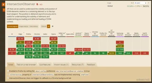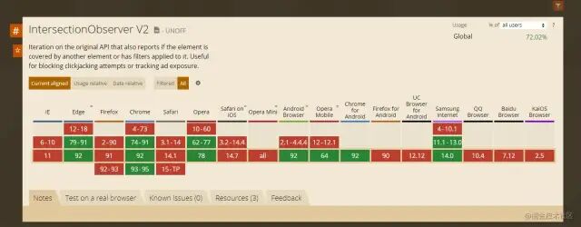 IntersectionObserver V2 的。所以小伙伴们在用的时候一定要注意兼容性。当然也有兼容解决方案,那就是 intersection-observer-polyfill