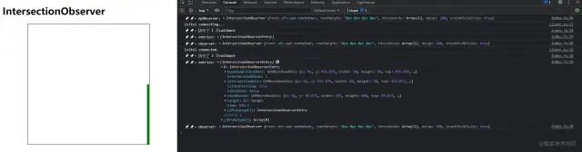 上面留了一个坑,回调函数的第二个参数 IntersectionObserver 观察器实例对象都有什么呢?我们把实例对象打印出来看一下