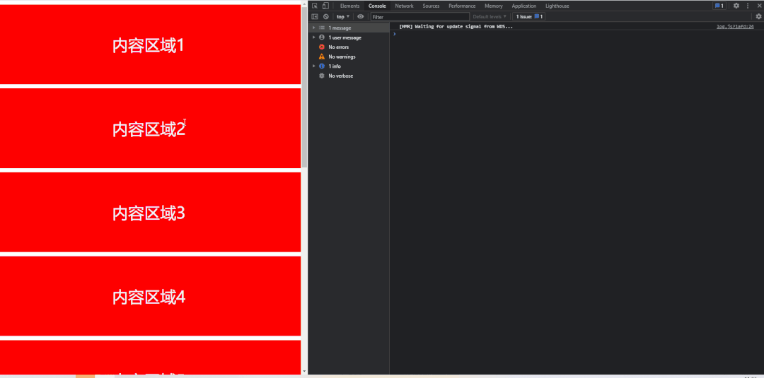 <template> <div class="box"> <div class="vbody" v-for='item in list' :key='item'>内容区域{{item}}</div> <div class="reference" ref='reference'></div> </div></template><script lang='ts'>import { defineComponent, onMounted, reactive, ref } from 'vue'export default defineComponent({ name: '', setup() { const reference = ref(null) const list = reactive([1, 2, 3, 4, 5, 6, 7, 8, 9, 10]) onMounted(() => { let n = 10 //回调函数 const callback = (entries) => { const myEntry = entries[0] if (myEntry.isIntersecting) { console.log(`🚀🚀~ 触发了无线滚动,开始模拟请求数据 ${n}`) n++ list.push(n) } } //配置对象 const options = { root: null, rootMargin: '0px 0px 0px 0px', threshold: [0, 1], trackVisibility: true, delay: 100, } //观察器实例 const myObserver = new IntersectionObserver(callback, options) //开始观察 myObserver.observe(reference.value) }) return { reference, list } },})</script><style>* { margin: 0; padding: 0; box-sizing: border-box;}.reference { width: 100%; visibility: hidden;}.vbody { width: 100%; height: 200px; background-color: red; color: aliceblue; font-size: 40px; text-align: center; line-height: 200px; margin: 10px 0;}</style>我们只需要在底部添加一个参考元素,当参考元素可见时,就向后台请求数据,就可以实现无线滚动的效果了。