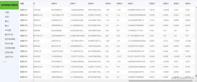 运算包括:总和、算术平均、加权平均、最大、最小、计数、样本标准差、样本方差、中位数、总体标准差、总体方差