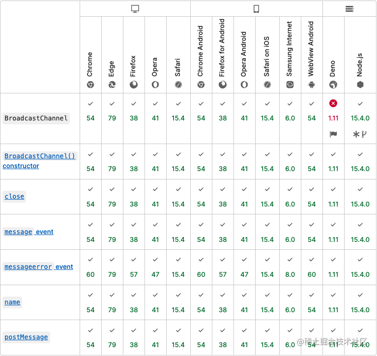 BroadcastChannel 是一个非常简单的 API ,内部包含了跨上下文同源通信的接口。它没有定义消息传输协议,故不同上下文中的不同文档需要自己实现。目前来看兼容性方面也基本没有问题。