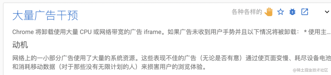 浏览器还会在一些情况下对网页行为做一些干预(intervention),比如会把占用 cpu 太多的广告的 iframe 删掉: