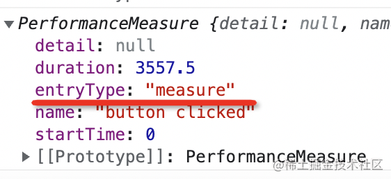 performance.measure('button clicked', 'from', 'to');后两个参数是时间点,不传代表从开始到现在。