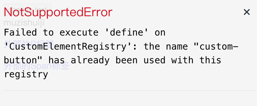 customElements.whenDefined('custom-button').then(() => { customElements.define('custom-button', CustomButton);}).catch((err) => { console.log(err, 'err-----')});捕获的报错信息: