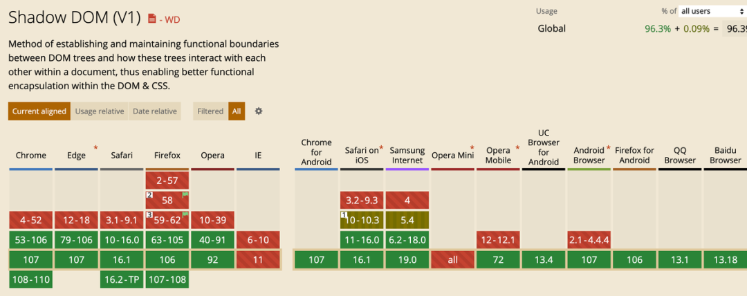 class CustomShadowDOM extends HTMLElement { constructor() { super(); // 创建一个shadowDOM const shadow = this.attachShadow({ mode: "open" }); const info = document.createElement("span"); const style = document.createElement("style"); const css = "span { color: red; }"; style.type = "text/css"; style.appendChild(document.createTextNode(css)); info.setAttribute("class", "info"); info.textContent = this.getAttribute("text") || "default"; // shadow可以创建一个不受外部影响,切拥有内部js运行逻辑,拥有独立的 // css的自定义元素(也就是web component), shadow.appendChild(style); shadow.appendChild(info); }}window.customElements.define("custom-shadow-dom", CustomShadowDOM);并非只能在 CustomElement 下使用,即便是普通的 HTMLElement 也能使用这一技术来实现样式保护,详见 👉:Using shadow DOM - Web Components | MDN[2]。