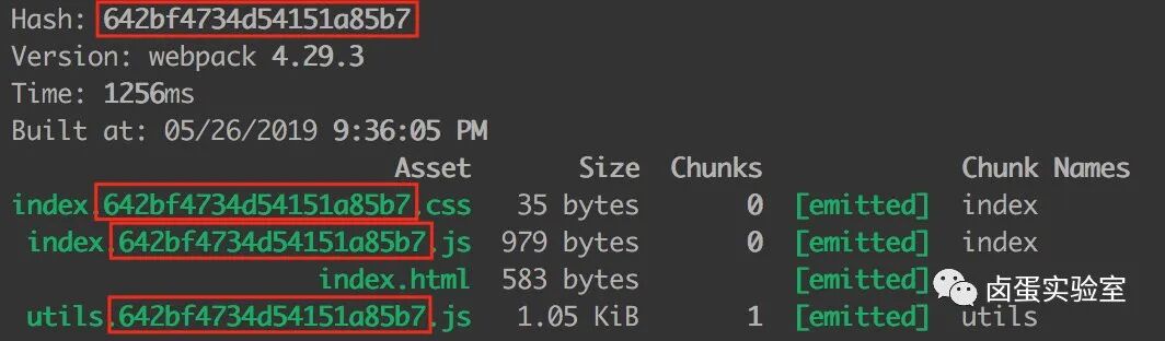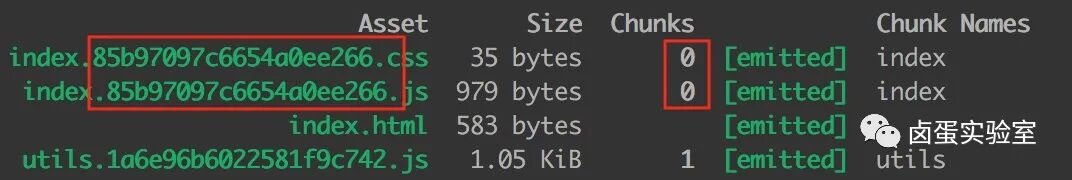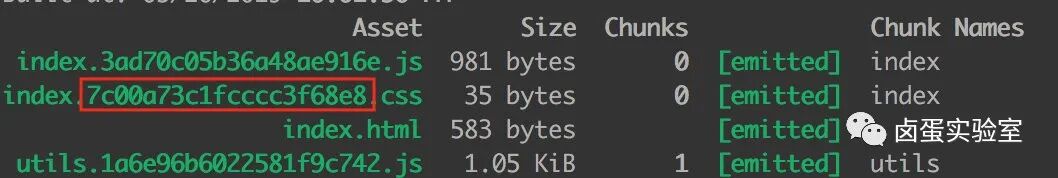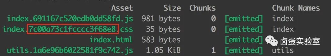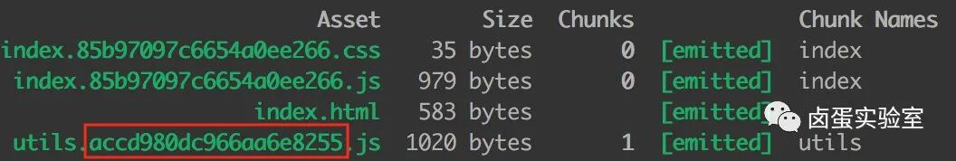 { entry: { index: "../src/index.js", utils: '../src/utils.js', }, output: { filename: "[name].[chunkhash].js", // 改为 chunkhash }, ...... plugins: [ new MiniCssExtractPlugin({ filename: 'index.[chunkhash].css' // // 改为 chunkhash }), ]}构建结果如下: