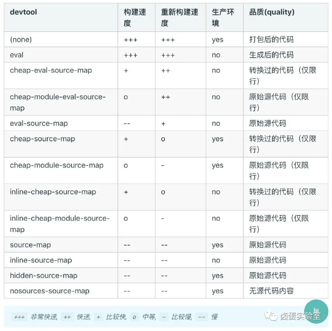 如果再仔细看一下,就发现这 13 种大部分都是 eval、cheap、inline 和 module这 4 个词排列组合的,我做了个简单的表格,比官网上直白多了: