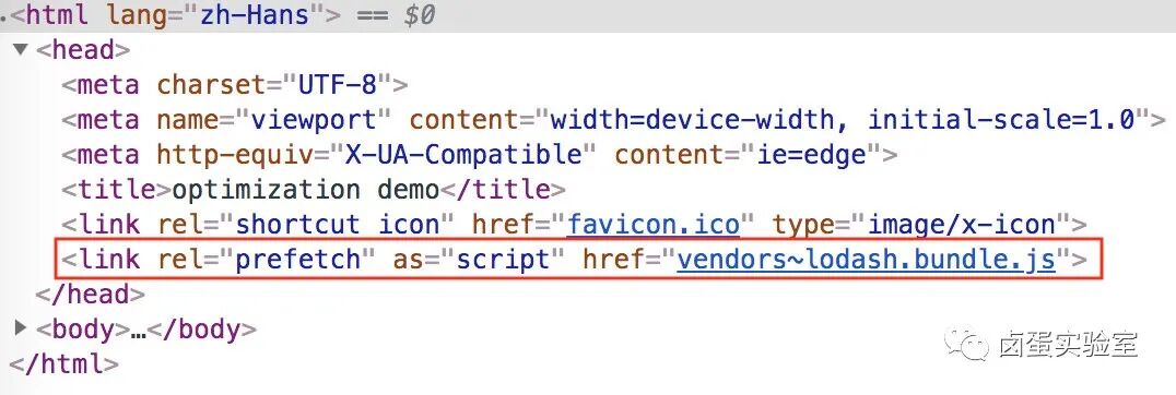...const { default: _ } = await import(/* webpackChunkName: "lodash" */ /* webpackPrefetch: true */ 'lodash');...就会以 <link rel="prefetch" as="script"> 的形式预拉取 lodash 代码: