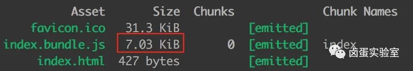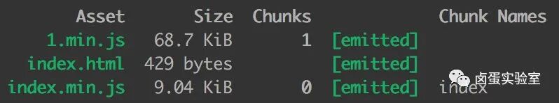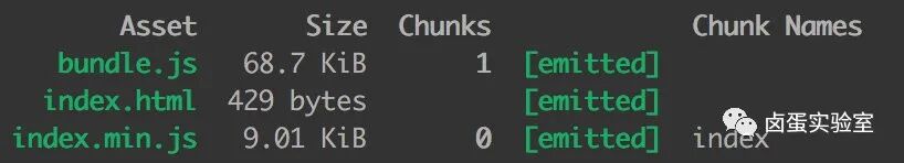 { entry: { index: "../src/index.js" }, output: { filename: "[name].min.js", // index.min.js }}这时候的打包结果如下: