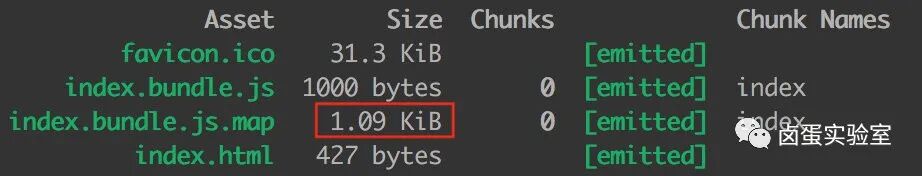 映射文件以 base64 格式编码,加在 bundle 文件最后,不产生独立的 map 文件。加入 map 文件后,我们可以明显的看到包体积变大了;