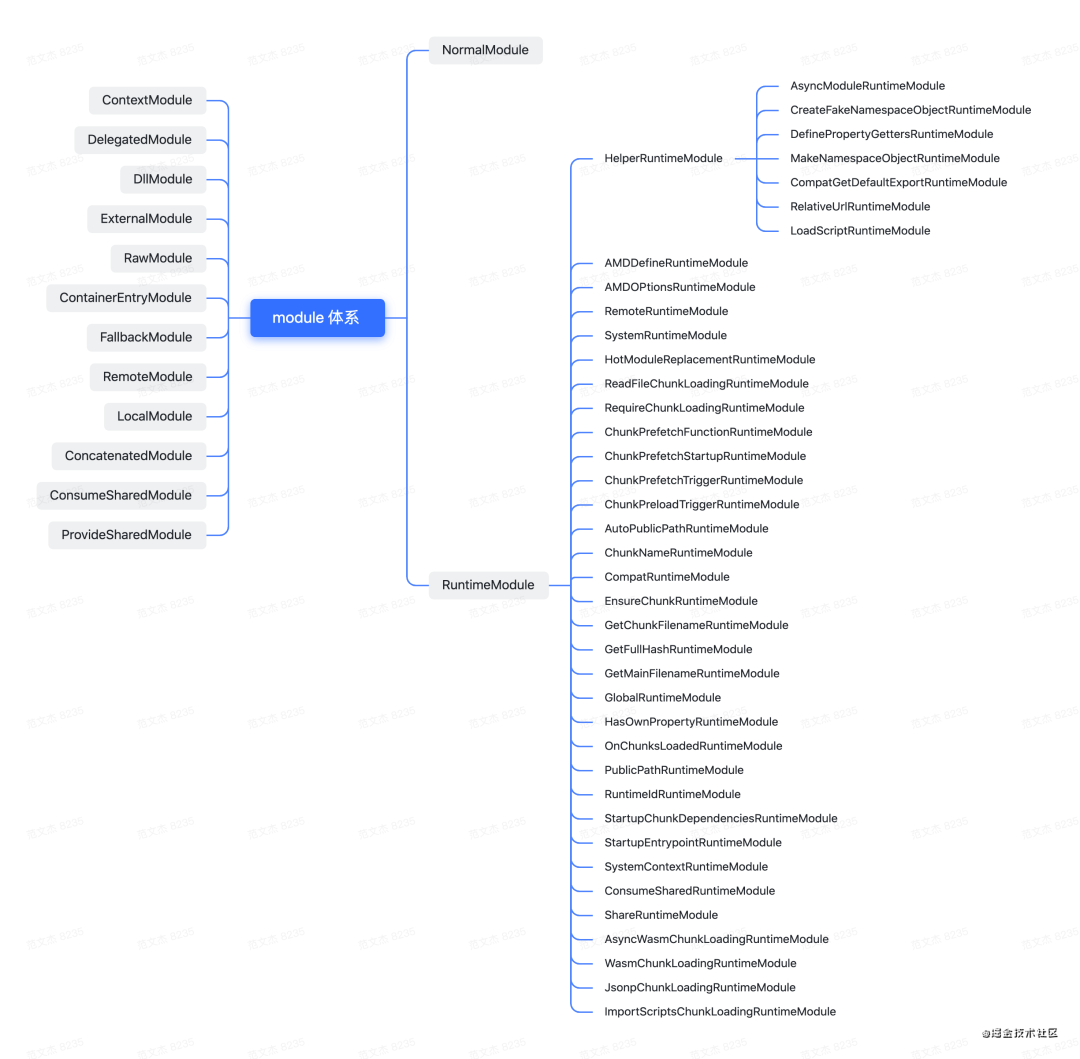 module 是 webpack 资源处理的基本单位,可以认为 webpack 对资源的路径解析、读入、转译、分析、打包输出,所有操作都是围绕着 module 展开的。有很多文章会说 module = 文件, 其实这种说法并不准确,比如子类 AsyncModuleRuntimeModule 就只是一段内置的代码,是一种资源而不能简单等价于实际文件。