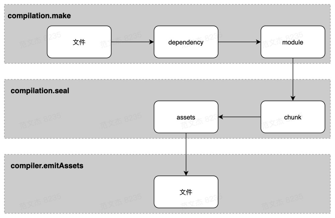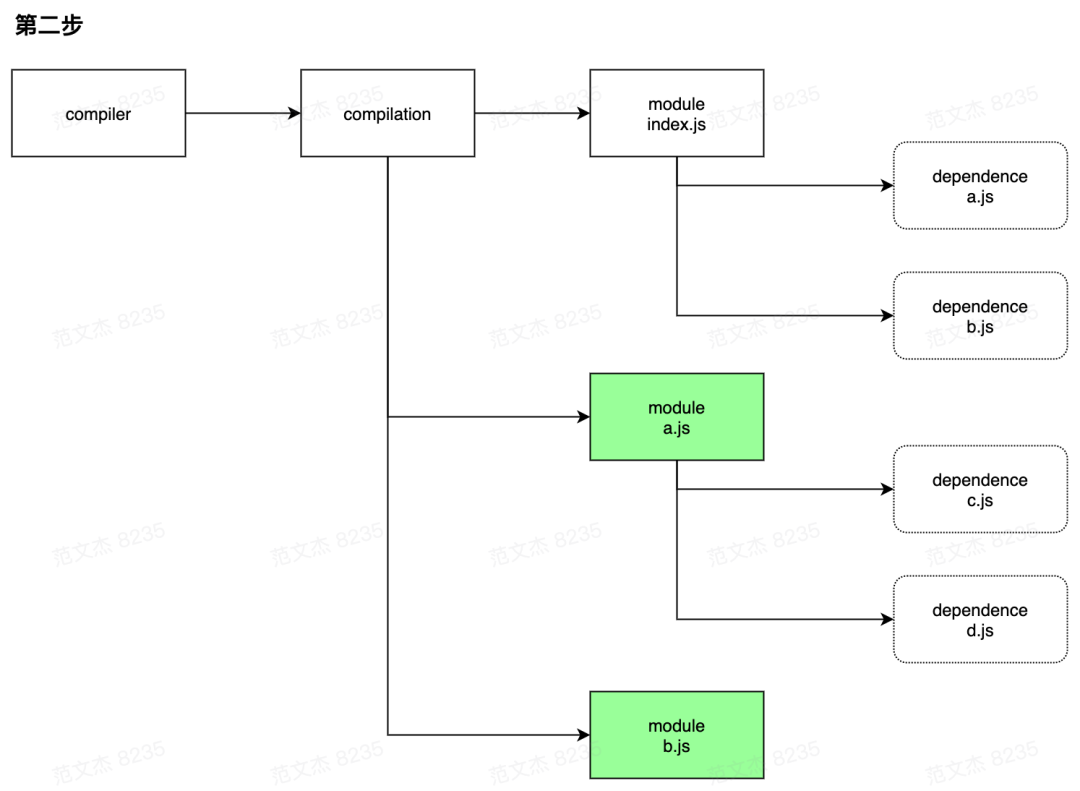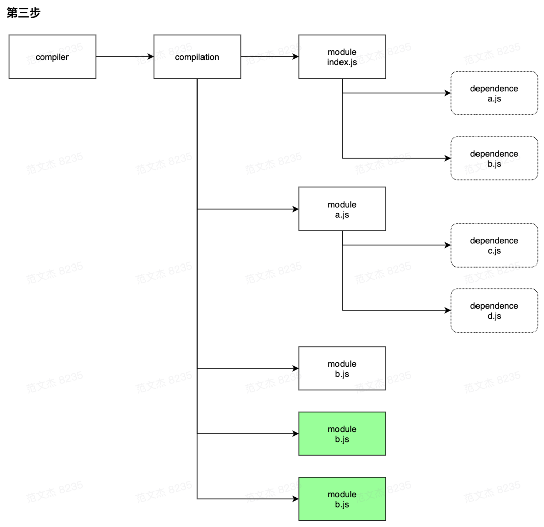 compilation 按这个流程递归处理,逐步解析出每个模块的内容以及 module 依赖关系,后续就可以根据这些内容打包输出。