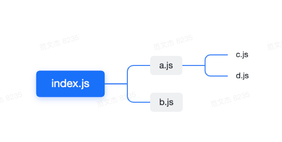 此时得到 module[index.js] 的内容以及对应的依赖对象 dependence[a.js] 、dependence[b.js] 。OK,这就得到下一步的线索:a.js、b.js,根据上面流程图的逻辑继续调用 module[index.js] 的 handleParseResult 函数,继续处理 a.js、b.js 文件,递归上述流程,进一步得到 a、b 模块: