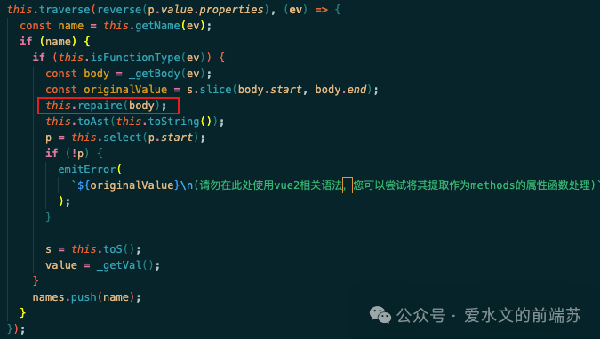笔者一开始是在全局维护了 repaired 数组来进行标记,后来觉得不够优雅,就去大致翻了下源码,可以像如下这样做,调用 ast 树上的 remove 接口就可以了