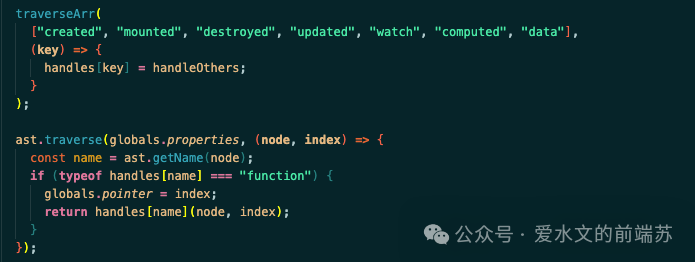 由于在 vue2 中的 script 代码,本质上是按属性分类的,所以我们要搞一个批量自动触发调用的机制,而不是一堆 if else 做判断然后分发处理